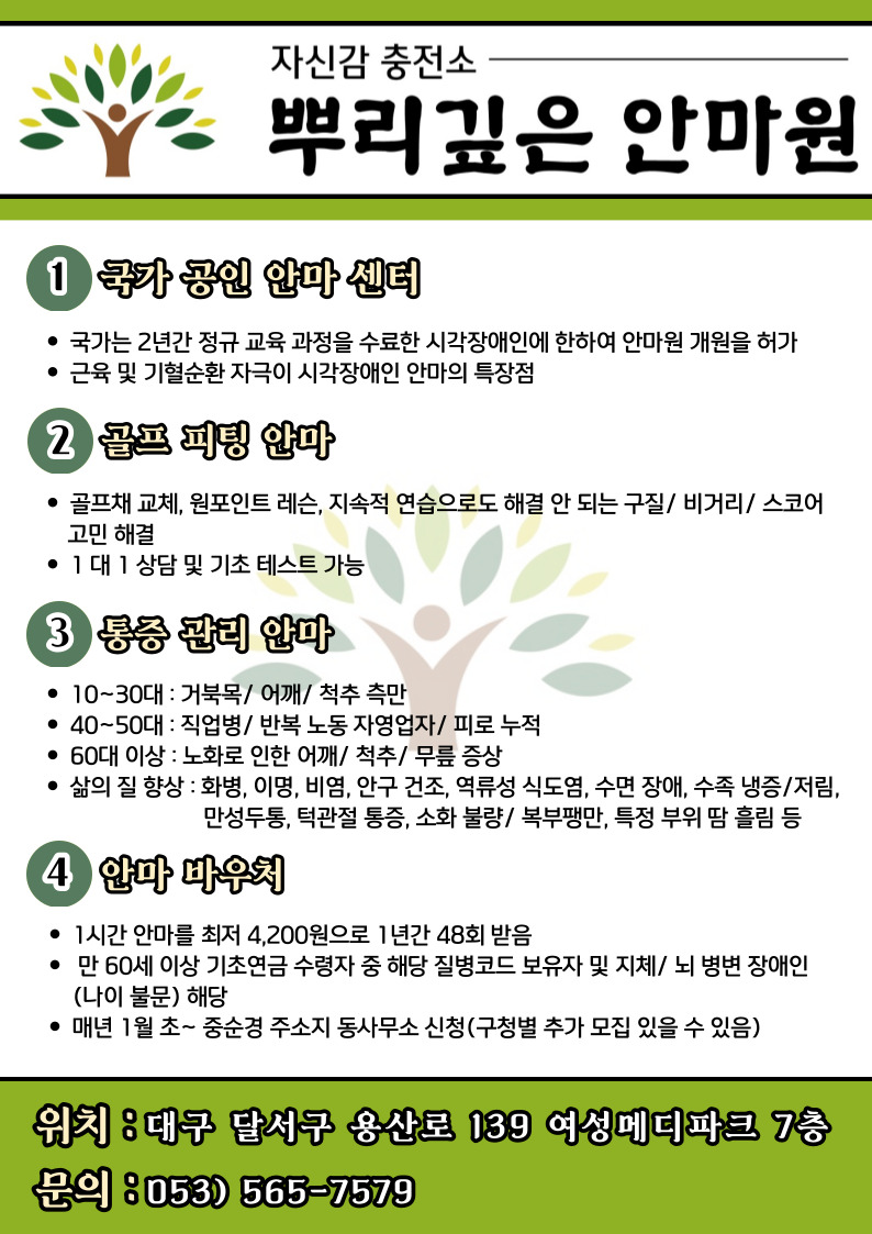 국가 공인 시각장애인 안마원에서 건강 자신감 충전해 보세요!