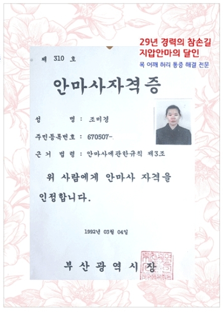 30년 지압 안마 경력의 참손길이 잔잔하게 뭉친근육 통증이