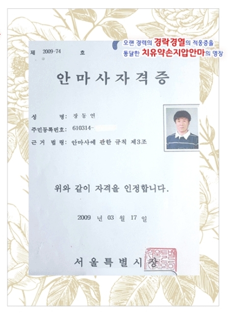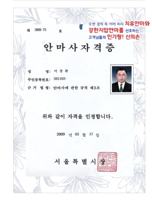 섬세한 손끝의 탁월한 감각이 고객님의 뭉친근육과 통증이