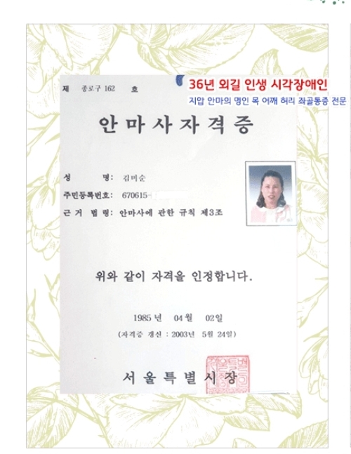 안마 받은 후 몸이 가볍고 구름을 걷는 듯 시각장애인의